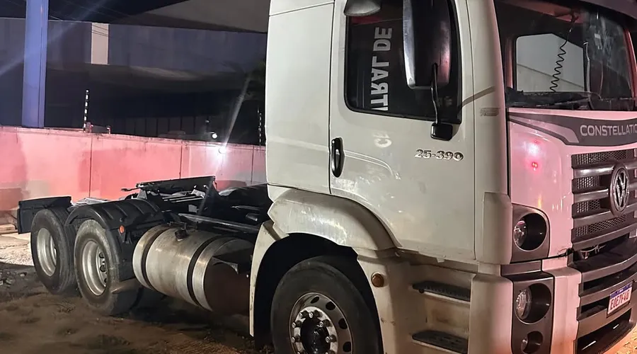 O caminhão trator e um aparelho celular Samsung de cor lilás pertencente ao suspeito foram apreendidos.